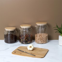 Słoik do przechowywania z drewnianą pokrywką o pojemności 1,9 l to idealne rozwiązanie dla osób ceniących sobie porządek i styl w kuchni. Wykonany z wysokiej jakości szkła, słoik umożliwia łatwe monitorowanie zawartości, co ułatwia szybkie odnalezienie potrzebnych produktów. Pojemność 1,9 l sprawia, że słoik jest wystarczająco przestronny, aby pomieścić większe ilości, co jest idealne do zakupów hurtowych. Jego elegancki design sprawia, że może być również dekoracyjnym elementem na blacie kuchennym lub w spiżarni. Drewniana pokrywka nie tylko dodaje słoikowi naturalnego uroku, ale także zapewnia szczelność, chroniąc przechowywane artykuły przed wilgocią i zanieczyszczeniami.