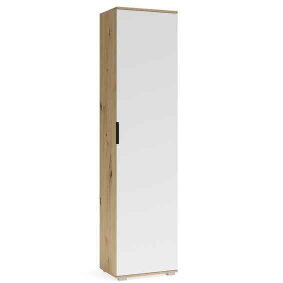 Słupek CLIF SL-50 to nowoczesny i funkcjonalny mebel, który doskonale sprawdzi się w każdym wnętrzu. Jego kompaktowe wymiary pozwalają na efektywne zagospodarowanie przestrzeni, nawet w mniejszych pomieszczeniach. Dzięki pojemnym półkom zapewnia wygodne miejsce do przechowywania. Szafa wykonana jest z laminowanej płyty meblowej, która zapewnia odporność na wilgoć, zarysowania i codzienne użytkowanie. Słupek można zamontować zarówno w wersji stojącej, jak i wiszącej, co daje większą elastyczność w ustawieniu. Drzwiczki otwierają się cicho i płynnie, dzięki zastosowaniu nowoczesnych zawiasów.