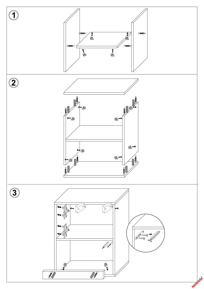 - Meblościanka składa się z szafki pod telewizor, która wyposażona jest w dwie wnęki oraz szafki.