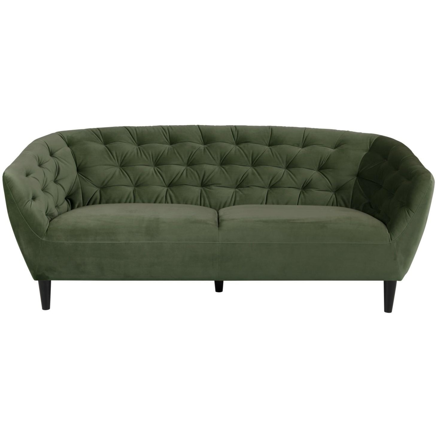 Sofa 3-osobowa Ria Velvet w kolorze forest green to elegancki i komfortowy mebel, idealny do nowoczesnych wnętrz. Tapicerka wykonana jest z miękkiego, przyjemnego w dotyku welwetu, który nadaje sofie luksusowy wygląd. Na siedzisku i oparciu znajdują się eleganckie pikowania wykończone guzikami, co dodaje jej klasycznego uroku. Sofa posiada cztery solidne nogi wykonane z drewna kauczukowego, pomalowane na czarno, co zapewnia stabilność i trwałość. Wymiary sofy to 191 cm szerokości, 78 cm wysokości i 84 cm głębokości, co sprawia, że jest przestronna i wygodna dla trzech osób. Dzięki swojemu stylowemu designowi, sofa Ria Velvet doskonale komponuje się zarówno w aranżacjach glamour, jak i skandynawskich.