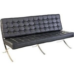 Jest to zaprojektowana w 1929 roku sofa, która powstał na zamówienie, i stanęła w niemieckim pawilonie na wystawie w Barcelonie.,Charakterystycznie powyginana w kształt litery "X" chromowana podstawa oraz pikowana w kwadraty skóra ekologiczna to najbardziej charakterystyczne cechy tego produktu. Cała kolekcja Barcelona to fotel z podnóżkiem, sofy, ławki, leżanka i stolik.,Sofa wykonana jest ze skóry ekologicznej. Produkt jest inspirowany projektem Barcelona.,