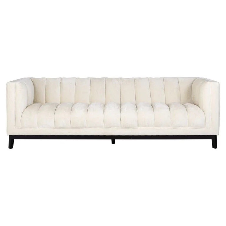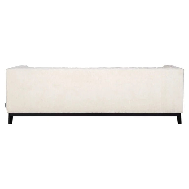 Całość wykończono wygodnym i przyjemnym w dotyku materiałem szenilowym w ciepłej białej kolorystyce, który oparto na ramie z drewna sosnowego.