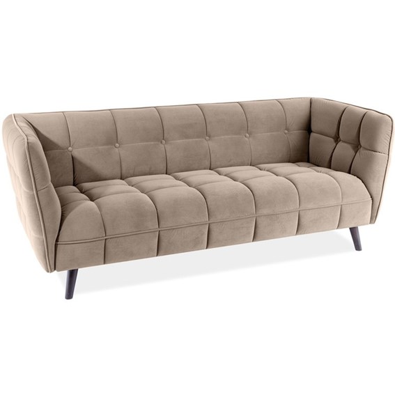 Sofa Castello Velvet 3 to piękny, szykowny mebel w nowoczesnym stylu, który nada Twojemu pomieszczeniu luksusowego wyglądu. Wykonany z wysokiej jakości materiałów, zapewnia komfort i trwałość. Łączy elementy drewniane z eleganckim aksamitem w kolorze ciemny beżowy (bluvel 40). Wygodna, miękka poduszka siedziska zapewni Ci wygodę podczas siedzenia. Precyzyjne wykończenie i wyprofilowane oparcie dodają mu szyku i elegancji. Sofa łatwo utrzymać w czystości. Dzięki niemu Twój salon nabierze nowego blasku.