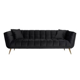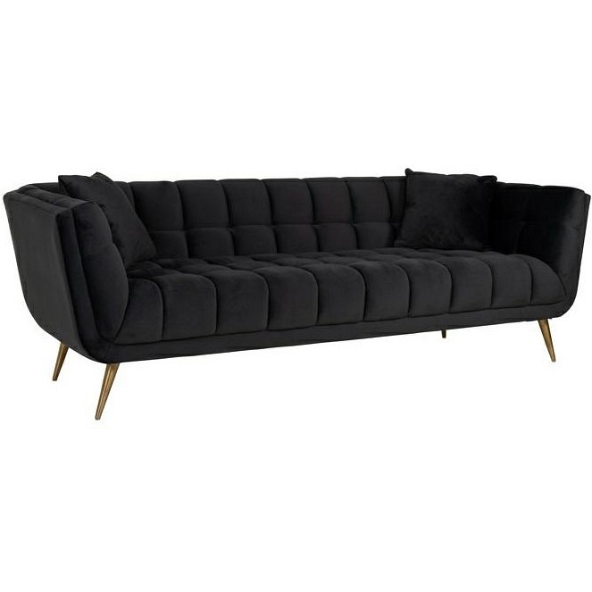 Richmond Huxley Khaki to stylowa, wygodna sofa z weluru w kolorze czarnym, która doda Twojemu wnętrzu elegancji. Welurowa tkanina jest bardzo przyjemna w dotyku oraz łatwa w czyszczeniu. Nogi zostały wykończone szczotkowanym złotem, dzięki czemu ma luksusowy i szykowny wygląd. Solidna konstrukcja sprawia, że jest bardzo trwała. To idealny dodatek do nowoczesnych wnętrz.