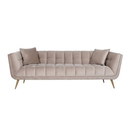 Richmond Huxley Khaki to stylowa, wygodna sofa z weluru w kolorze beżowym, która doda Twojemu wnętrzu elegancji. Welurowa tkanina jest bardzo przyjemna w dotyku oraz łatwa w czyszczeniu. Nogi zostały wykończone szczotkowanym złotem, dzięki czemu ma luksusowy i szykowny wygląd. Solidna konstrukcja sprawia, że jest bardzo trwała. To idealny dodatek do nowoczesnych wnętrz.