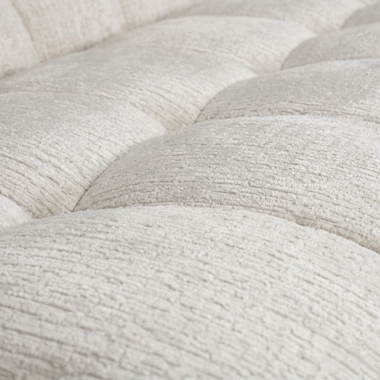 Minimalistyczna podstawa wspaniale współgra z pikowanym wykończeniem z tkaniny poliestrowej o nazwie FR-Fusion 02 Cream.