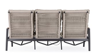 Sofa ogrodowa MIGUEL łączy nowoczesny styl z wyjątkową wygodą. Jej konstrukcja oparta jest na trwałej, aluminiowej ramie pokrytej matowym wykończeniem. Miękkie poduszki o zwiększonej grubości zapewniają relaks na najwyższym poziomie, a neutralny, beżowy kolor idealnie komponuje się z roślinnością i innymi meblami. Model doskonale sprawdzi się w zestawieniu z fotelem MIGUEL i stolikiem ogrodowym, tworząc spójną strefę wypoczynku na świeżym powietrzu.