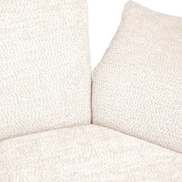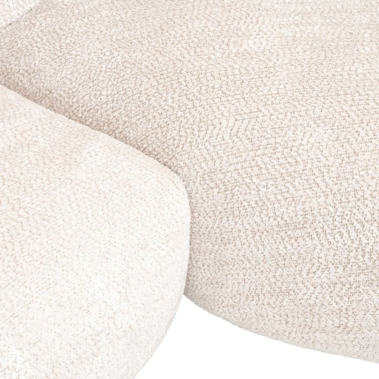 - Tapicerka z poliestru o teksturze boucle w odcieniu jasnego beżu, idealna do minimalistycznych wnętrz
