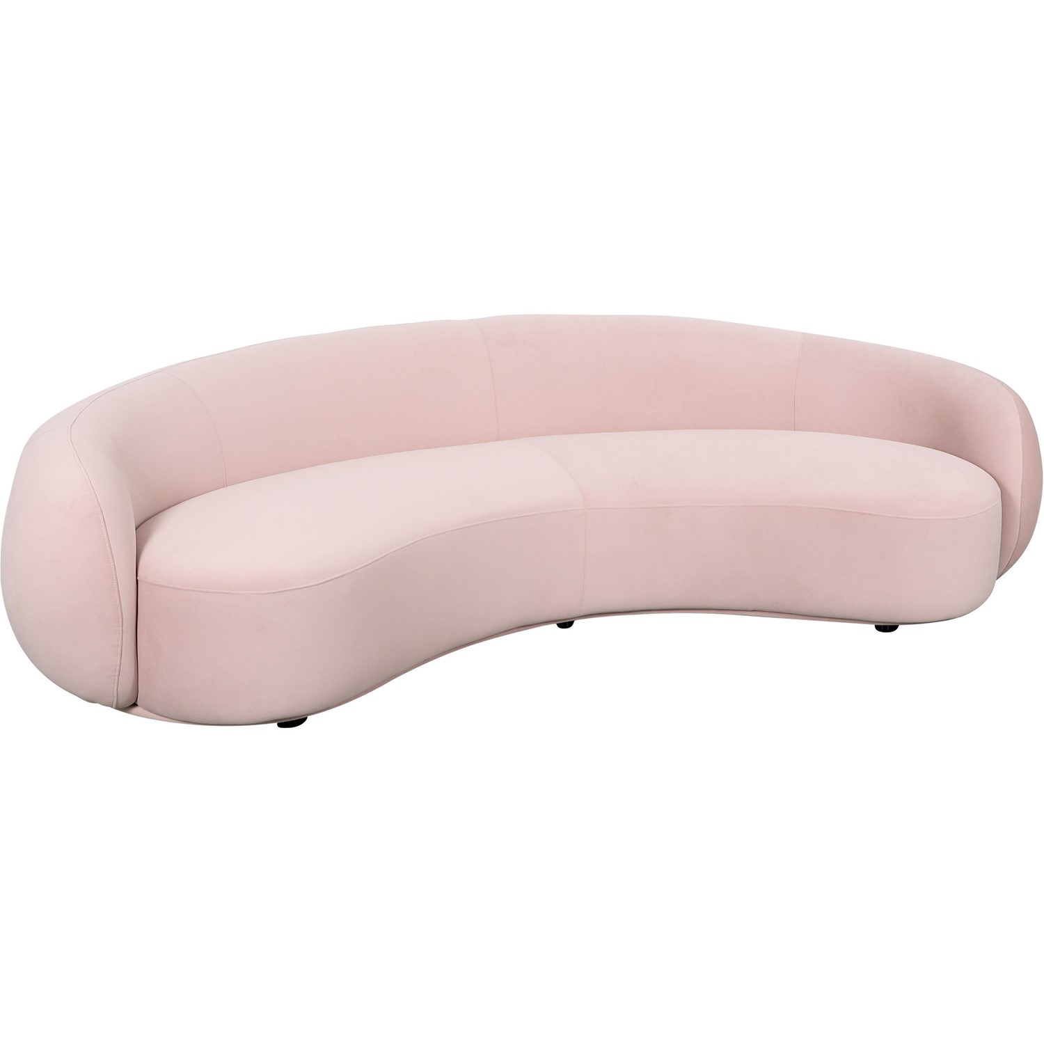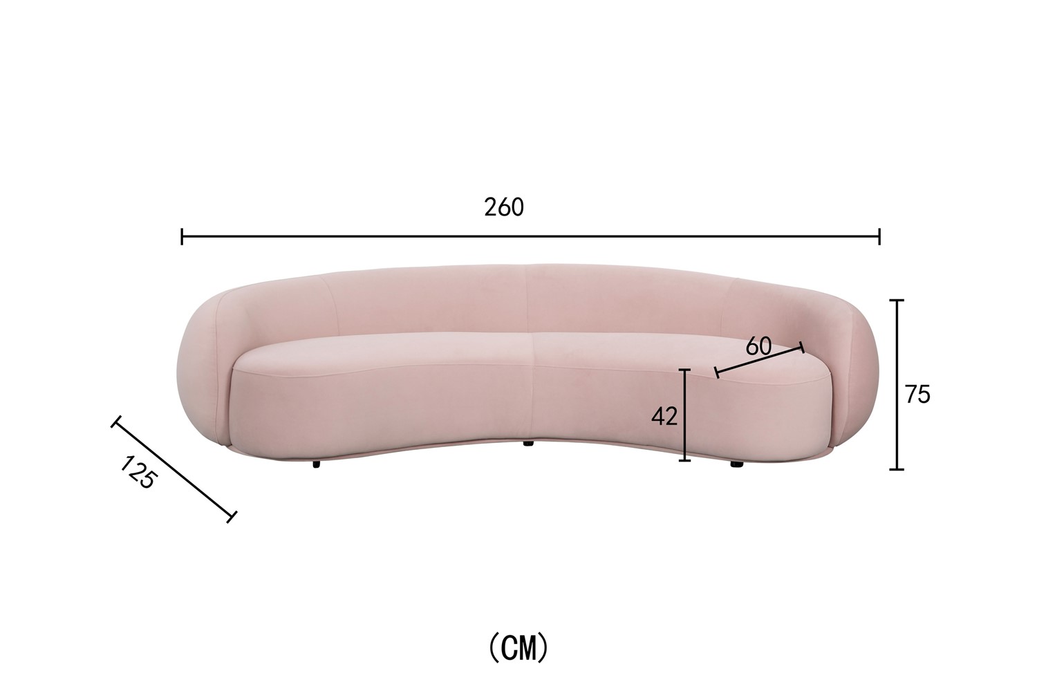 Nowoczesna sofa w stylu Art Deco przynosi nową definicję elegancji i stylu do każdego wnętrza. Jej minimalistyczna, owalna forma, z podstawą przypominającą delikatnie literę C, emanuje nowatorskim podejściem do designu. Wszystkie krawędzie zostały zaokrąglone, nadając meblowi nie tylko harmonijnego wyglądu, ale także zapewniając mu przyjemny, miękki wygląd. Zastosowana modna tkanina boucle w kolorze różowym jest jak powiew świeżości, który ożywia każde pomieszczenie, dodając mu wyrafinowanej elegancji. Ta tkanina nie tylko nadaje sofie wyjątkowego wyglądu, ale także zapewnia niezrównany komfort użytkowania.