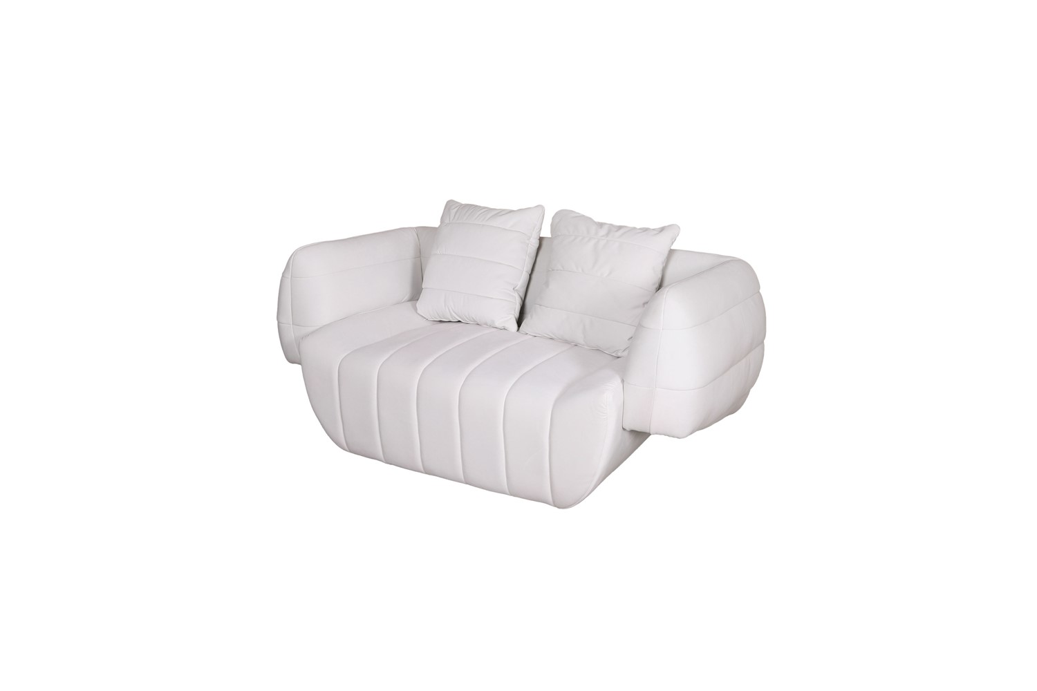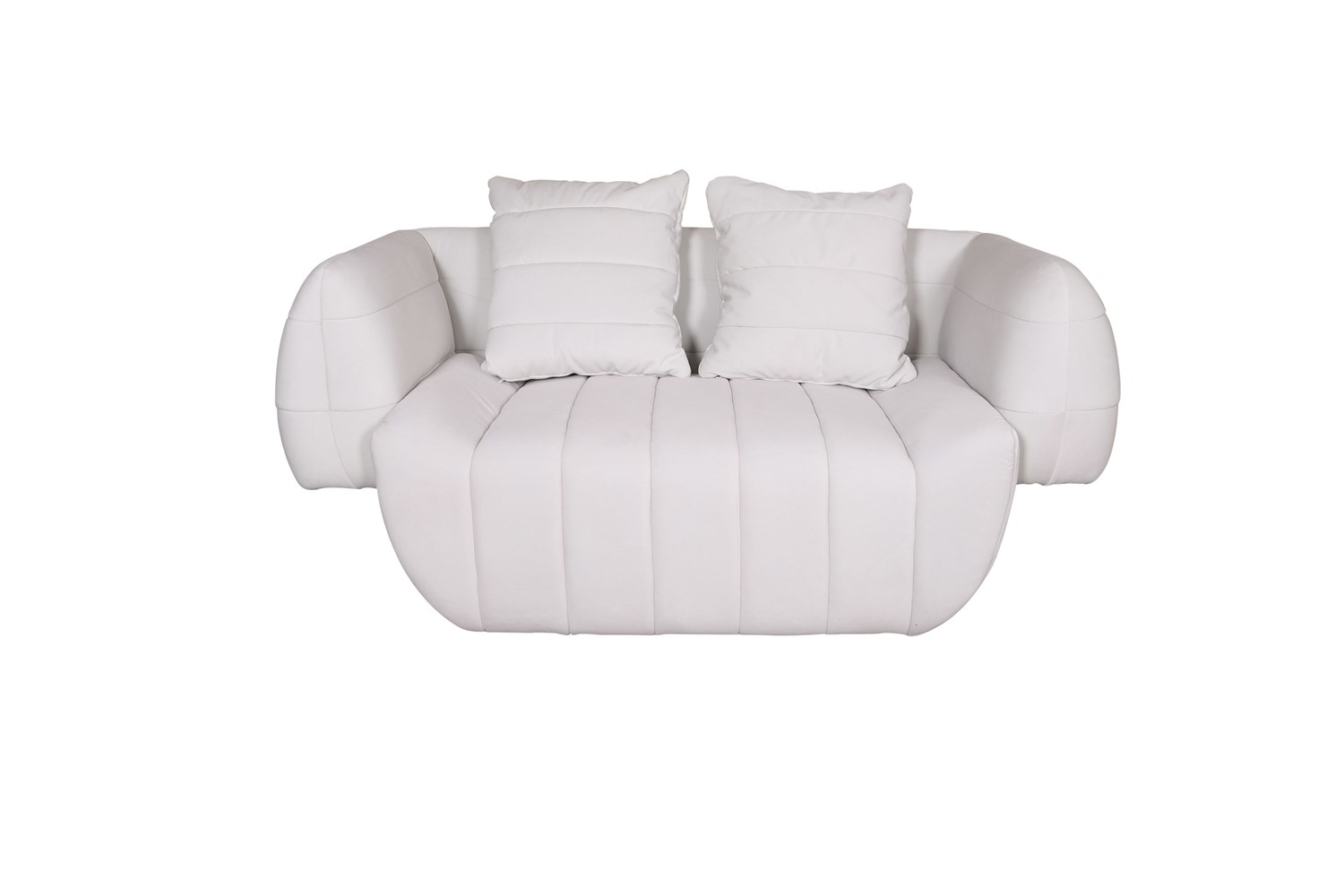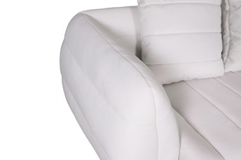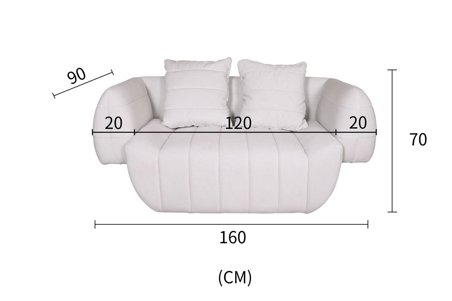 Oryginalna sofa w stylu Mid Century przynosi ze sobą nutę elegancji i wyrafinowania, nawiązującą do klasycznych wzorców tego okresu. Jej kształt, przypominający łódkę, jest zarówno unikalny, jak i funkcjonalny, zapewniając użytkownikom wygodne miejsce do wypoczynku i relaksu. Wykonana z wysokiej jakości welurowej tkaniny w białym kolorze, sofa emanuje bogactwem i stylem. Stylowe pionowe przeszycia siedziska dodają meblowi wyjątkowego charakteru, podkreślając jego elegancję i finezję. Szerokie oparcie z poziomym przeszyciem zapewnia nie tylko wygodę, ale także dodaje sofie subtelnego uroku i luksusu.
