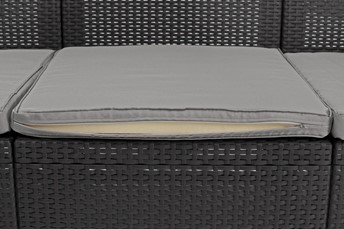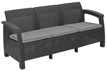 Sofa 3-osobowa nie wymaga specjalnej impregnacji ani specjalnego czyszczenia. Materiały, z których wykonane są meble to wysokiej jakości polipropylen o wzorze brązowego rattanu, który jest odporny na warunki atmosferyczne i promieniowanie UV. Dzięki zastosowaniu specjalnych filtrów sofa będzie cieszyć oko przez wiele lat bez uszkodzeń i przebarwień. Poduszki posiadają zamki błyskawiczne, dzięki czemu można je łatwo zdjąć i wyprać. Z sofy Corfu Love można korzystać wyłącznie w sezonie wiosenno-letnim. Na zimę wystarczy zabezpieczyć go np. kocem lub plandeką. Ten mebel ogrodowy zapewnia wysoki komfort dzięki specjalnie wyprofilowanym oparciom, wygodnym szerokim podłokietnikom oraz niestandardowym poduszkom o grubości 6 cm. Dodatkowym atutem są nóżki sofy, dzięki którym można ją postawić nie tylko na twardym podłożu, ale również na ziemi.