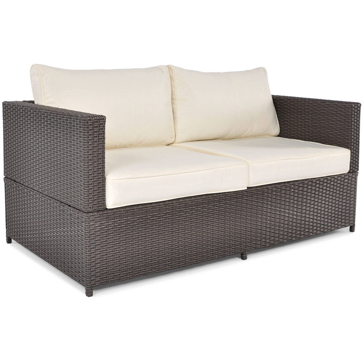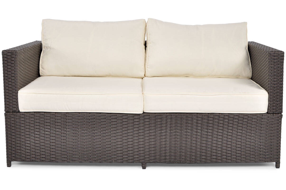 Elegancki design sofy łączy brązowy i kremowy kolor, co tworzy stylowy i uniwersalny wygląd, pasujący do różnych aranżacji ogrodowych. Wygodne siedzisko i oparcie zapewniają maksymalny komfort, czyniąc sofę idealnym miejscem do relaksu w ogrodzie, na tarasie czy balkonie.