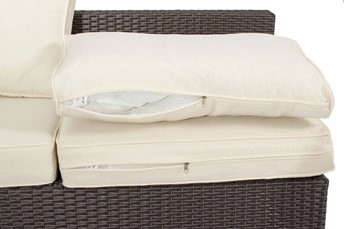Elegancki design sofy łączy brązowy i kremowy kolor, co tworzy stylowy i uniwersalny wygląd, pasujący do różnych aranżacji ogrodowych. Wygodne siedzisko i oparcie zapewniają maksymalny komfort, czyniąc sofę idealnym miejscem do relaksu w ogrodzie, na tarasie czy balkonie.
