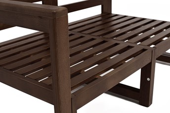 Nowoczesna 2-osobowa sofa ogrodowa w minimalistycznym stylu skandynawskim to połączenie naturalnych materiałów i klasycznej bryły ławki. Drewniane meble z serii MALTA doskonale sprawdzą się w słonecznym ogrodzie, na tarasie czy balkonie. Kolekcja mebli składa się z sof 3- i 2-osobowych, foteli, narożników oraz stolików, dzięki szerokiemu wyborowi wzorów i kolorów stworzysz zestaw ogrodowy swoich marzeń. Drewniany stelaż sofy składa się z 2 modułów i otwartych boków. Konstrukcja jest bardzo wytrzymała dzięki wewnętrznym nóżkom, więc maksymalne obciążenie na siedzisko to 120 kg. Sofa wykonana jest z wysokiej jakości drewna, zaimpregnowanego i pomalowanego specjalną farbą odporną na warunki atmosferyczne i pleśń. Lekka drewniana konstrukcja nadaje niepowtarzalny charakter stylowi rustykalnemu i boho.