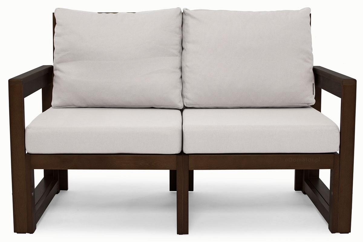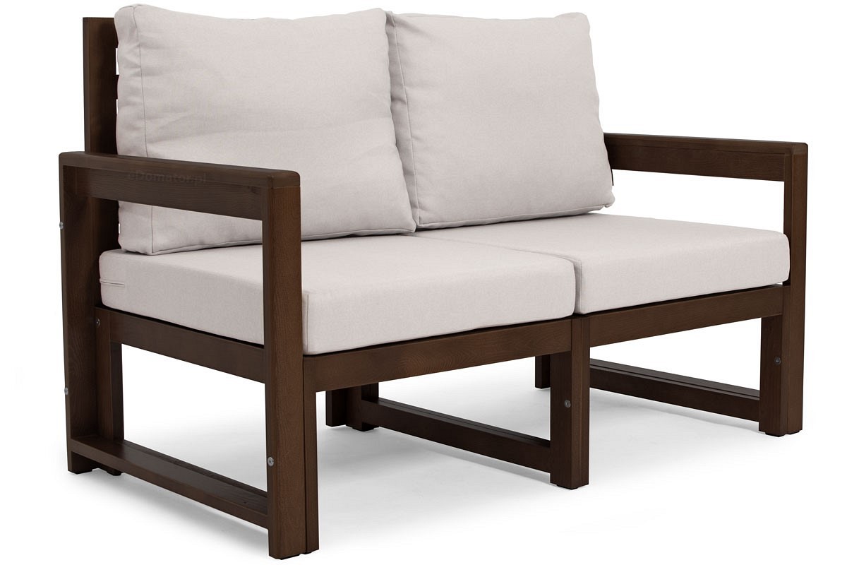 Nowoczesna 2-osobowa sofa ogrodowa w minimalistycznym stylu skandynawskim to połączenie naturalnych materiałów i klasycznej bryły ławki. Drewniane meble z serii MALTA doskonale sprawdzą się w słonecznym ogrodzie, na tarasie czy balkonie. Kolekcja mebli składa się z sof 3- i 2-osobowych, foteli, narożników oraz stolików, dzięki szerokiemu wyborowi wzorów i kolorów stworzysz zestaw ogrodowy swoich marzeń. Drewniany stelaż sofy składa się z 2 modułów i otwartych boków. Konstrukcja jest bardzo wytrzymała dzięki wewnętrznym nóżkom, więc maksymalne obciążenie na siedzisko to 120 kg. Sofa wykonana jest z wysokiej jakości drewna, zaimpregnowanego i pomalowanego specjalną farbą odporną na warunki atmosferyczne i pleśń. Lekka drewniana konstrukcja nadaje niepowtarzalny charakter stylowi rustykalnemu i boho.