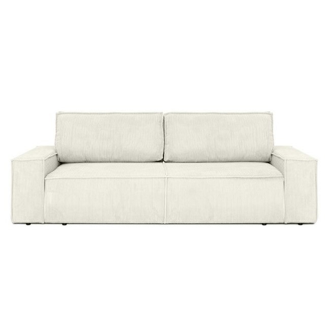 PILLOW to nowoczesna i funkcjonalna sofa. Siedzisko i oparcie zostały starannie wykonane z zastosowaniem sprężyny falistej oraz pianki PUR, co zapewnia nie tylko trwałość, ale również doskonały komfort podczas siedzenia. Całość sofy została wykończona przyjemną w dotyku tkaniną sztruksową o nazwie Poso 100. Ten materiał jest nie tylko estetyczny, ale także odporny na ścieranie oraz działanie światła, co sprawia, że sofa zachowa swoją świeżość na długi czas. Dodatkowy komfort użytkowania zapewniają poduszki, które idealnie sprawdzają się po rozłożeniu mebla do nocnego wypoczynku. Dzięki wbudowanemu pojemnikowi na pościel, ta sofa nie tylko oferuje wygodne miejsce do siedzenia i spania, ale także stanowi praktyczne rozwiązanie, pozwalające zaoszczędzić miejsce i utrzymać porządek w przestrzeni mieszkalnej.