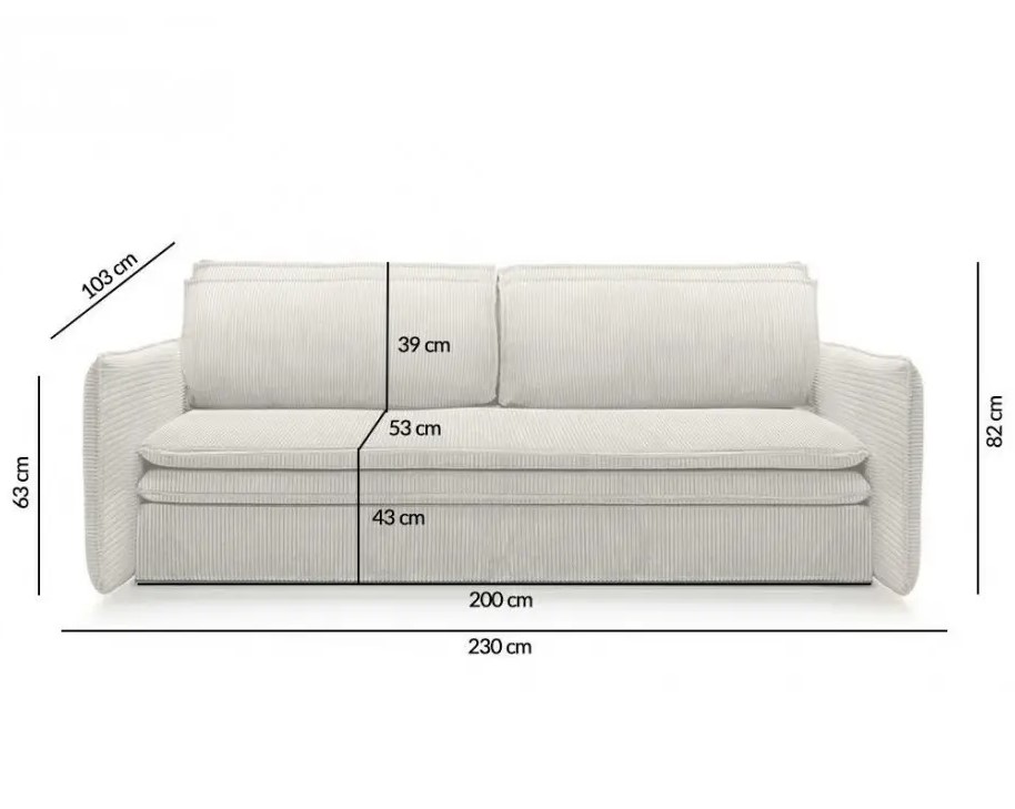 Funkcjonalność: Sofa wyposażona jest w pojemnik na pościel, który umożliwia przechowywanie pościeli i poduszek, maksymalizując przestrzeń użytkową w Twoim domu.