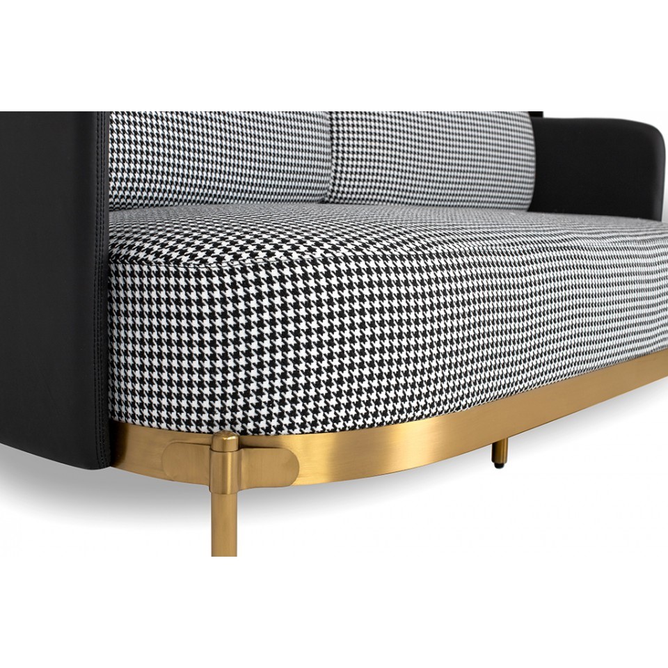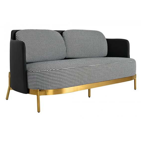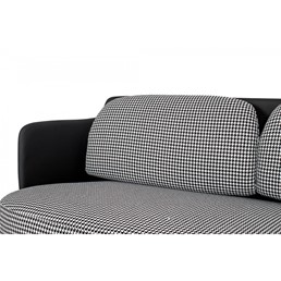 Sofa VENICE obita wyjątkowym wzorem w pepitkę, to wyraz pełnej klasy elegancji w każdym wnętrzu. Pepitka, będąca ikoną zarówno w modzie, jak i w aranżacji wnętrz, nadaje tej sofie niepowtarzalny charakter, łącząc ponadczasowy wzór z nowoczesnym designem. Sofa zachwyca nie tylko wzornictwem, ale również wygodą siedzenia. Siedzisko zostało tapicerowane tkaniną, co dodaje subtelnej finezji. Dodatkowo, tył mebla wraz z podłokietnikami został obity czarną ekoskórą, co nie tylko wzmacnia efekt kontrastu, ale także podkreśla elegancję i trwałość. Czarna metalowa podstawa doskonale współgra z wzorem pepitki, tworząc spójną kompozycję i nadając wyjątkowego charakteru. Ta harmonia kolorów i materiałów sprawia, że sofa VENICE doskonale odnajdzie się w każdej nowoczesnej aranżacji, dodając pomieszczeniu nuty luksusu i stylu.