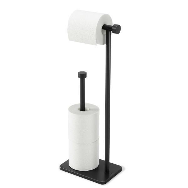 Minimalistyczny stojak CAPPA łączy w sobie styl i praktyczność. Jego nowoczesna forma w wykończeniu czarnym lub srebrnym dobrze komponuje się z większością aranżacji łazienkowych. Stojak jest wolnostojący, nie wymaga montażu i pomieści zarówno używaną rolkę papieru, jak i zapasową. Antypoślizgowa podstawa zapewnia stabilność, nawet na mokrych powierzchniach. To doskonały wybór dla osób ceniących wygodę i estetykę w codziennych rozwiązaniach.
