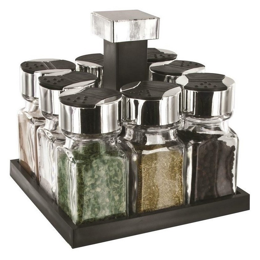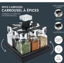 Stojak na przyprawy obrotowy z 8 pojemnikami to funkcjonalny i estetyczny dodatek do każdej kuchni. Wykonany z wysokiej jakości szkła, stojak umożliwia łatwe przechowywanie różnorodnych przypraw, od ziół po sproszkowane mieszanki. Każdy z 8 pojemników ma pojemność 100 ml i jest wyposażony w podwójną klapę (wylewka-talerz), co ułatwia precyzyjne dozowanie. Nowoczesny design i obrotowa funkcja zapewniają szybki dostęp do ulubionych przypraw, co znacząco usprawnia pracę w kuchni. Kompaktowy rozmiar sprawia, że stojak zajmuje minimalną ilość miejsca na blacie, a przezroczyste szkło ułatwia identyfikację zawartości. Idealny do każdej kuchni, dodaje zarówno wygody, jak i estetyki.