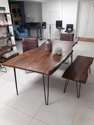 Stół drewniany w kolorze orzechowym. Kształt oraz wymiary mogą się różnić od zdjęcia produktu, meble wykonywane są ręcznie.
