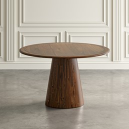 Stół drewniany w stylu mid-century to kwintesencja elegancji i minimalistycznego designu, które harmonijnie współgrają, tworząc wyjątkowy mebel. Jego okrągły blat i podstawa w kształcie stożka to nie tylko praktyczne rozwiązanie, ale również estetyczne połączenie formy i funkcji. Stół o minimalistycznym designie to nie tylko miejsce do spożywania posiłków, ale również centralny punkt aranżacji. Jego uniwersalny charakter sprawia, że doskonale wpasowuje się w różne przestrzenie, od nowoczesnych po klasyczne.
