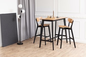 Stół barowy Roxby w kolorze czarnym/naturalnym to stylowy mebel, który doskonale wpasuje się w nowoczesne wnętrza. Często charakteryzuje się połączeniem naturalnego drewna z metalowymi elementami, co tworzy ciekawy kontrast i atrakcyjny wygląd. Taki stół może być idealny do kuchni, jadalni lub przestrzeni barowej, a jego wysokość sprawia, że jest odpowiedni do wykorzystania z wysokimi krzesłami barowymi. Nowoczesny i minimalistyczny design, który pasuje do różnych aranżacji.Wysokość i kształt stołu sprawiają, że jest doskonałym miejscem do spożywania posiłków lub spotkań towarzyskich.