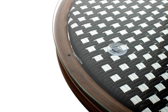- Wyjątkowa konstrukcja: Stół wykonany z rattanu z efektem drewna orzechowego oraz stali, co zapewnia jego trwałość i stabilność. Transparentny szklany blat dodaje mu nowoczesności i elegancji.