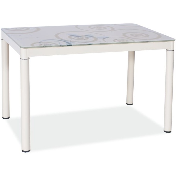Stół DAMAR jest to klasyczny szklany stół o szerokim zastosowaniu. Połączenie blatu z hartowanego szkła i metalowych nóg czyni z niego doskonały dodatek do wysmakowanego wnętrza. Sprawdzi się doskonale jako stół w kuchni, jak i w salonie. Piękne zdobienia na blacie dodają mu awangardy i klasy.