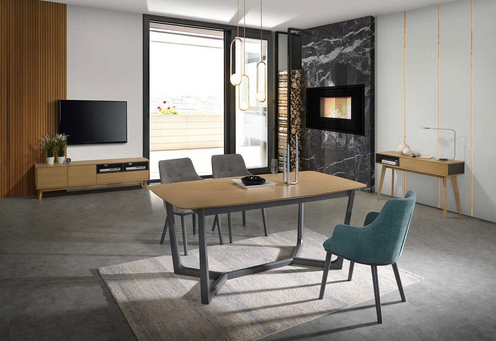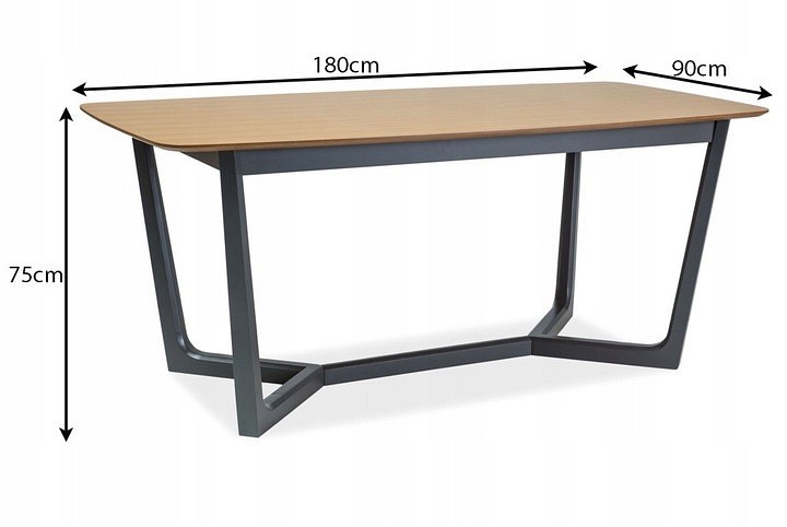Stół, blat: MDF+okleina naturalna, stelaż: drewno, kolor: dąb + grafit.