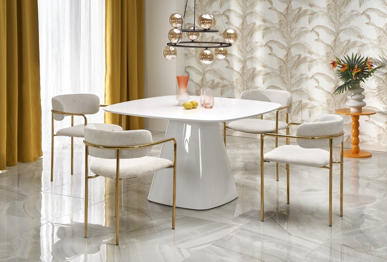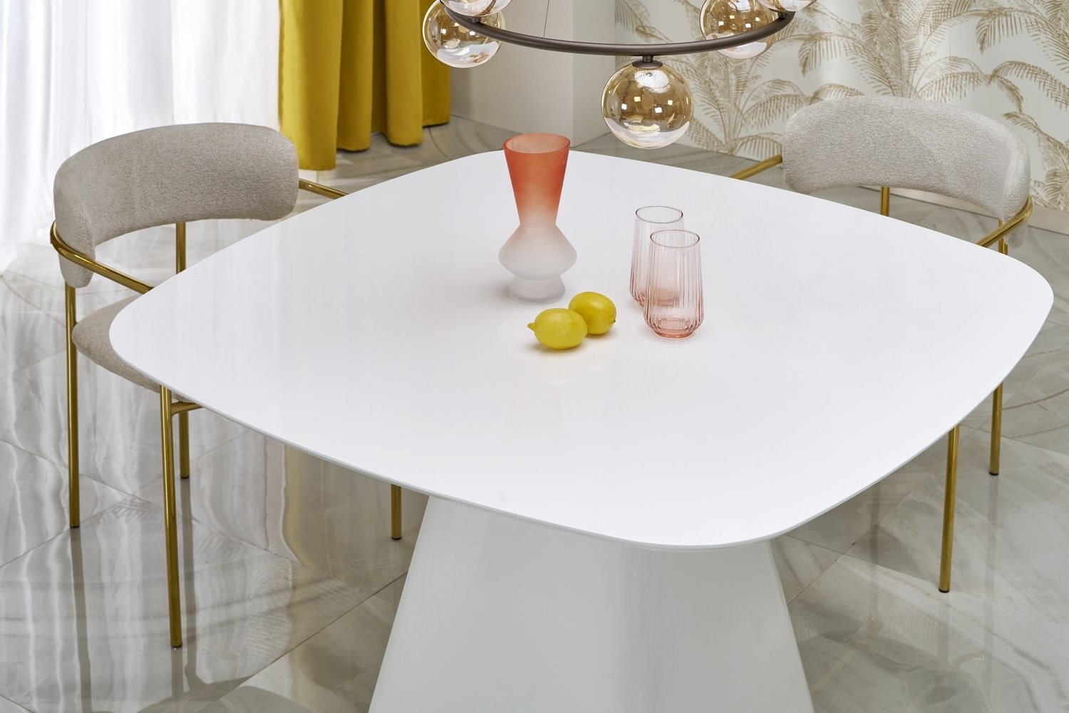 Biały kolor stołu dodaje pomieszczeniu jasności, optycznie powiększając przestrzeń. Jest to neutralny odcień, który łatwo komponuje się z innymi kolorami i stylami aranżacyjnymi.