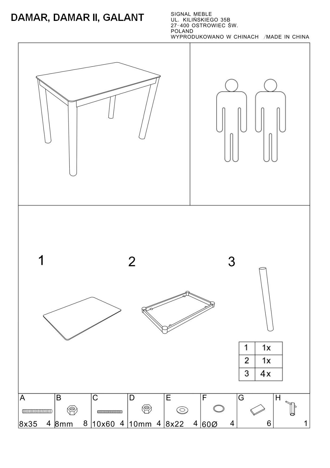 Stół DAMAR 100x60 BiałyStół DAMAR 80x60 BiałyStół DAMAR 100x60 KremowyStół DAMAR 80x60 CzarnyStół DAMAR 80x60 Dąb Artisan/Czarny Mat