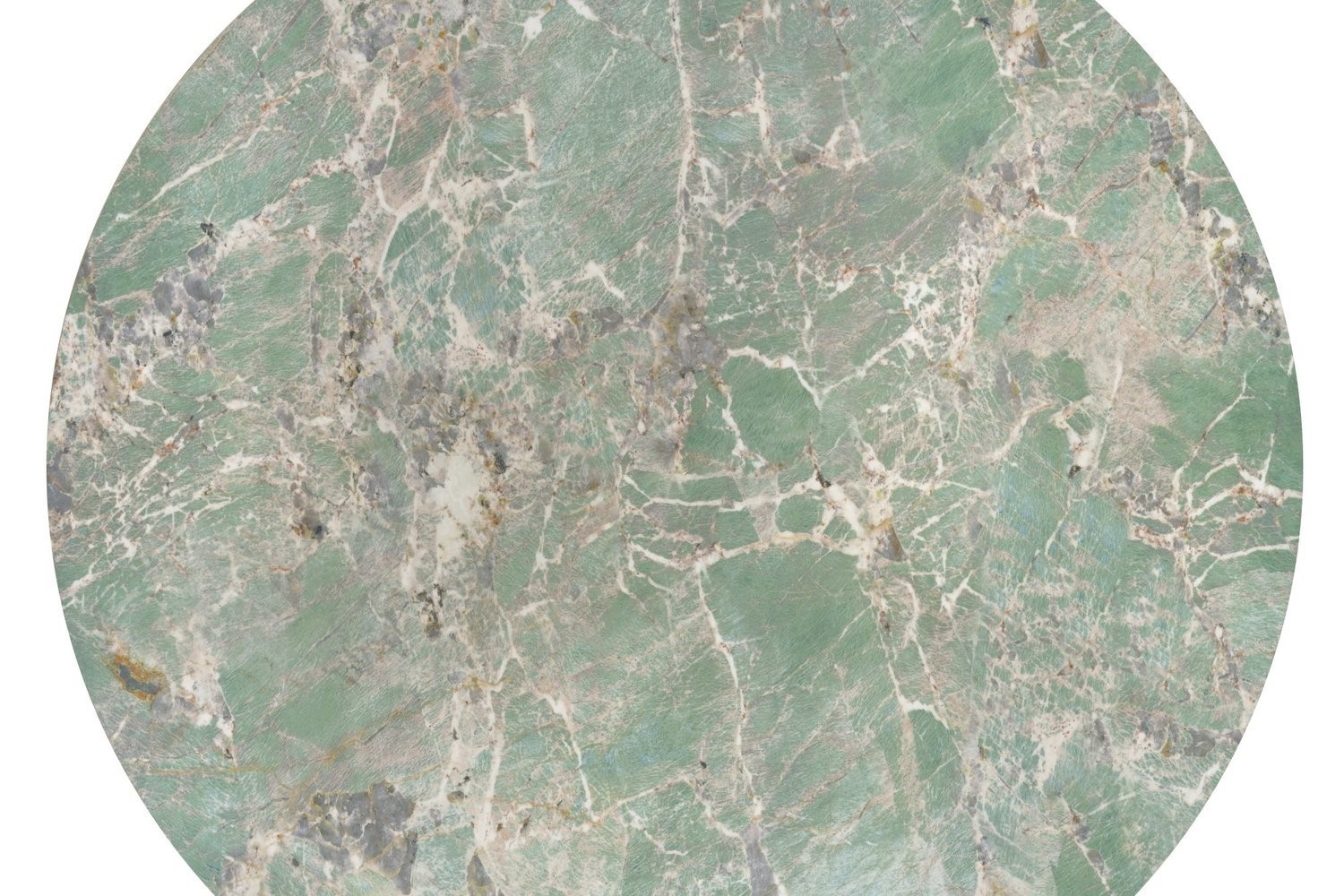 Stół okrągły z zielonym blatem imitującym marmur i czarnymi nogami to nie tylko mebel użytkowy, ale również dzieło sztuki, które dodaje elegancji i charakteru Twojemu wnętrzu. Idealny na wspólne posiłki, spotkania towarzyskie czy rodzinne chwile.