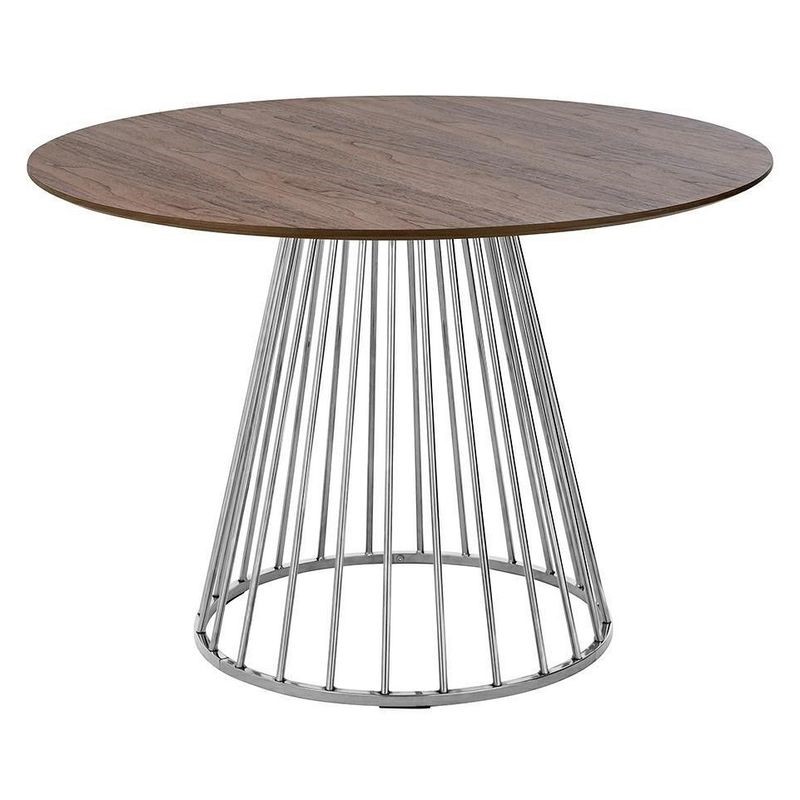 Okrągły blat o grubości 1,8mm, wykonany został z MDF-u w okleinie z orzechowego forniru.