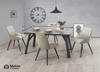 Mocny akcent? W takiej roli najlepiej sprawdzi się Halifax. Jego belkowate, lekko odchylone nogi wykonane zostały ze stali malowanej proszkowo. Dość gruby, zaokrąglony na brzegach blat – z laminowanej płyty MDF w kolorze betonu. Polecany do wnętrz utrzymanych w surowym klimacie, w których spotkamy się z takimi materiałami jak cegła czy blacha.