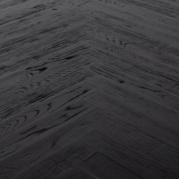 Blat stołu zdobi piękny fornir dębowy pochodzący z recyklingu, który ułożono w szykowny wzór modnej jodełki.