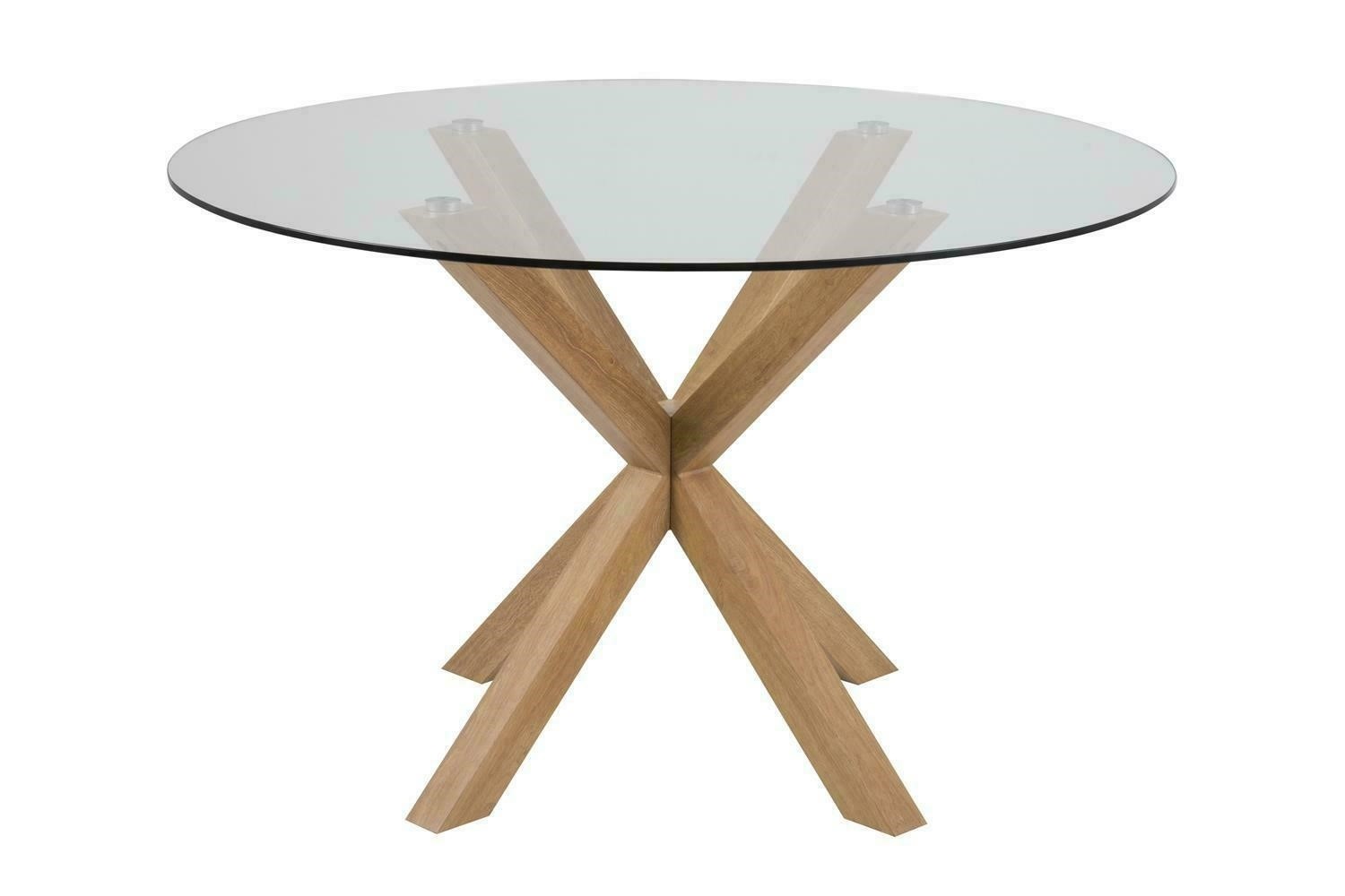 Stół Heaven okrągły z szklanym blatem to elegancki element wyposażenia wnętrz, który doskonale sprawdzi się w nowoczesnych aranżacjach. Jego mały rozmiar czyni go idealnym wyborem do mniejszych pomieszczeń, takich jak kuchnie, jadalnie czy kąciki do wypoczynku. Szklany blat nadaje mu lekkości i stylu, a okrągły kształt sprzyja integracji i stworzeniu przytulnej atmosfery. Blat ze szkła, co nadaje mu lekkości i elegancji, a jednocześnie ułatwia utrzymanie w czystości. Nogi wykonane z drewna dodają ciepła i naturalności. Jego okrągły kształt sprawia, że jest funkcjonalny i stylowy, doskonale pasując do różnych aranżacji wnętrz.