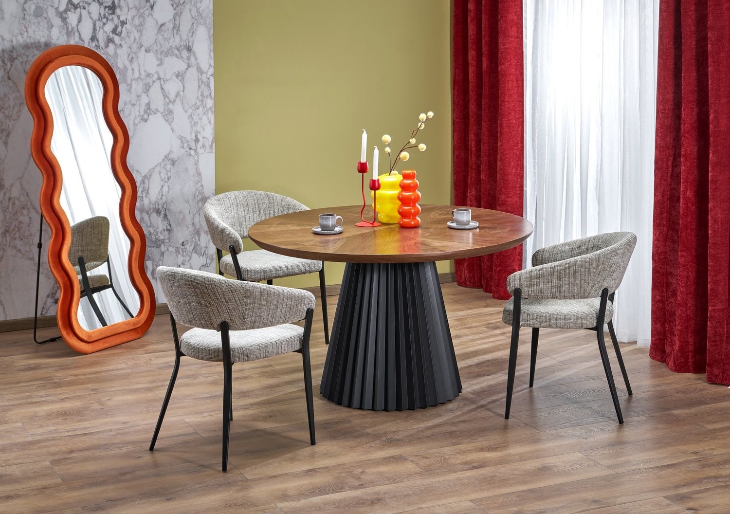 Stół okrągły to elegancki i funkcjonalny mebel, który doskonale sprawdzi się w jadalni, kuchni lub salonie. Jego zaokrąglony kształt sprzyja swobodnym rozmowom i wspólnemu spędzaniu czasu przy posiłkach. Brak ostrych krawędzi sprawia, że jest wygodny i bezpieczny w codziennym użytkowaniu. Solidna konstrukcja zapewnia stabilność oraz trwałość na długie lata. Okrągły blat oferuje komfortową przestrzeń dla domowników i gości. Uniwersalny design pozwala łatwo dopasować stół do różnych stylów aranżacji wnętrz. Starannie wykonane detale podkreślają estetykę oraz wysoką jakość mebla. To połączenie praktyczności, wygody i ponadczasowego wyglądu.