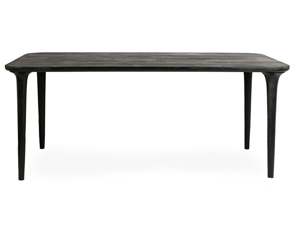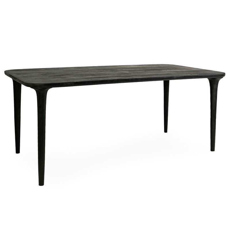 Model LAMINAR dostępny w dwóch rozmiarach, z czarnym blatem i drewnianą podstawą. Idealny do różnych wielkości jadalni, łączy nowoczesność z przytulną estetyką naturalnego drewna.