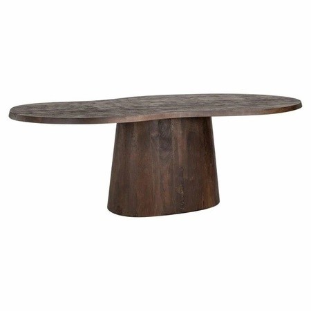 Oryginalny kształt blatu i masywną podstawę wykonano z drewna Mango.