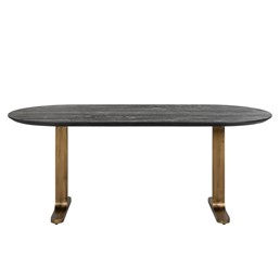Piękny, owalny blat wykonano z drewna Mango a mosiężną podstawę ze stali w kolorze matowego złota.