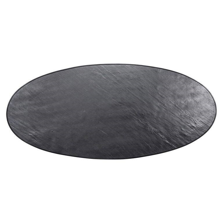 Piękny blat wykonano z forniru kamiennego a podstawę z czarnego metalu.