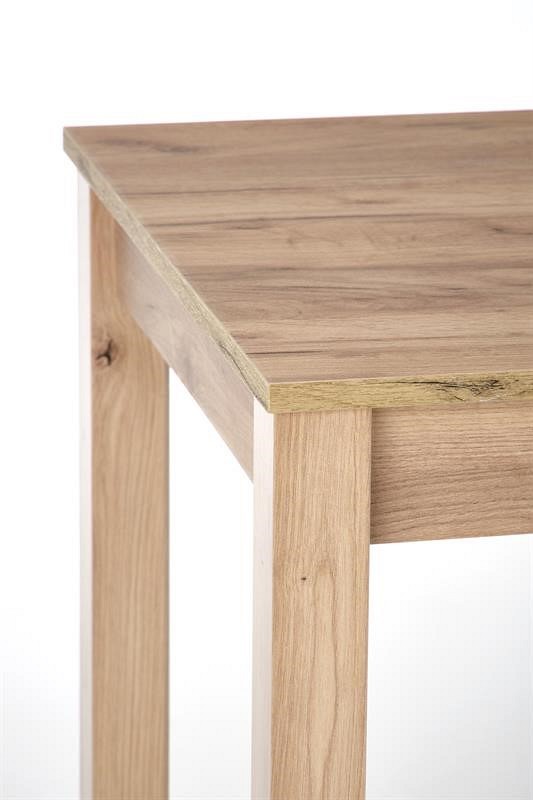 Stół KSAWERY wykonany jest z płyty laminowanej w kolorze dębu z obrzeżami lakierowanymi ABS. Krawędzie ABS doskonale przylegają do krawędzi płyty i są bardzo odporne na uszkodzenia mechaniczne oraz wilgoć. Podstawa stołu wykonana jest z płyty MDF laminowanej w kolorze dębu. Stół i krzesła tworzą kompletny mebel, który jest ważnym miejscem spotkań w każdym domu. Dębowe biurko KSAWERY 120x68 charakteryzuje się dobrym wykonaniem i prostą bryłą, doskonale sprawdzi się we wnętrzach nowoczesnych jak i klasycznych.