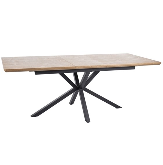 Stół LOGAN o wymiarach 160/200x90 cm to połączenie funkcjonalności i nowoczesnego designu. Blat stołu wykonany jest z płyty MDF pokrytej okleiną naturalną w ciepłym odcieniu dębu, co nadaje mu elegancki i wyrafinowany wygląd. Stelaż stołu wykonany z metalu w kolorze czarnym matowym zapewnia stabilność i dodaje industrialnego charakteru.