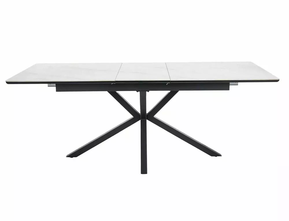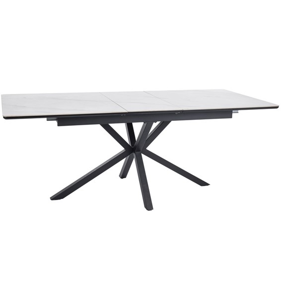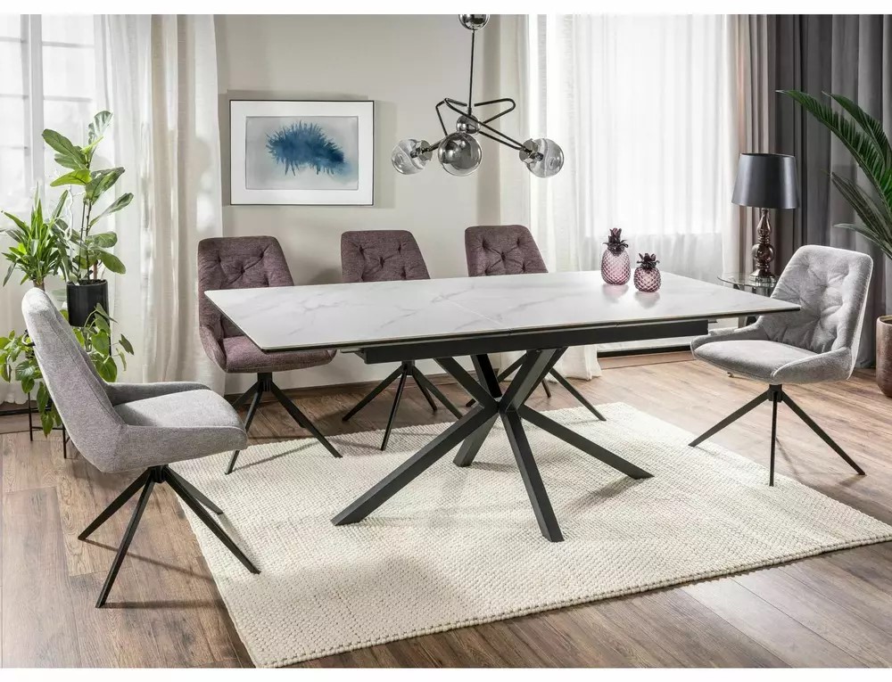 Stół LOGAN Ceramic to elegancki i nowoczesny mebel, który doskonale wpasuje się w estetykę współczesnych wnętrz. Jego rozkładany blat wykonany z MDF pokrytego ceramiką, zapewnia trwałość oraz łatwość w utrzymaniu czystości. Stelaż stołu wykonany z metalu w kolorze białym matowym dodaje konstrukcji stabilności oraz wyjątkowego wyglądu.