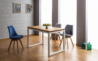 LORAS II to reprezentant stylu loftowego, który cechuje się minimalizmem i prostotą. Prostokątny blat dostępny jest teraz w dwóch wariantach: z blatem z litego, olejowanego drewna dębowego i z blatem w litym drewnie. Natomiast stelaż z metalu oferujemy w dwóch kolorach: białym oraz czarnym.