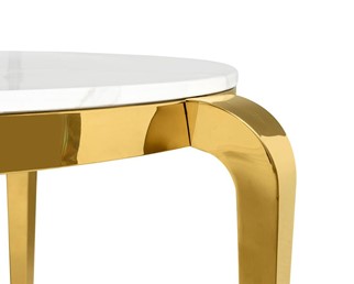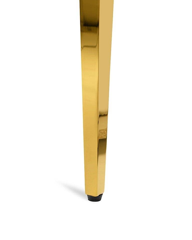 Złota stalowa podstawa: Podstawa stołu wykonana ze stali, wykończona w bogatym złotym kolorze, dodaje luksusu i stabilności, harmonizując z blatem.