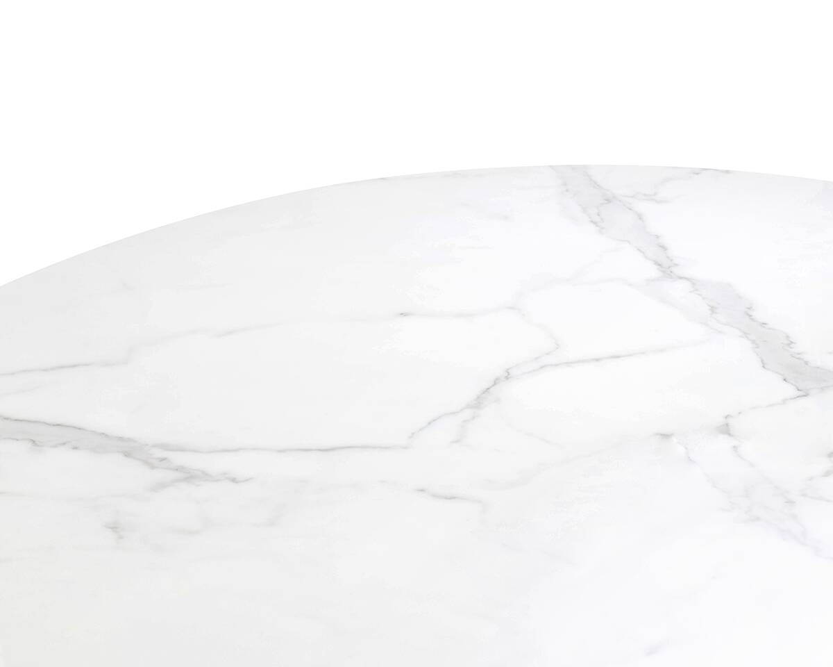 Okrągły blat z konglomeratu: Wykonany z wysokiej jakości konglomeratu imitującego marmur, blat prezentuje się niezwykle elegancko i jest odporny na codzienne użytkowanie.