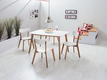 MOSSO to typowy przedstawiciel stylu skandynawskiego, cechującego się prostotą i minimalizmem. Stelaż podstawy wykonany jest z drewna dębowego. Blat wykonany jest z płyty MDF. Stół tworzy doskonały komplet z krzesłami MOSSO dostępnymi w naszej ofercie