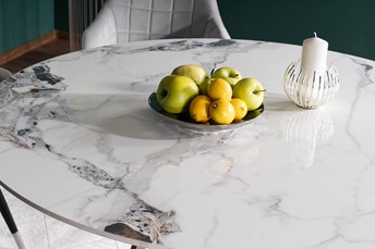 Stół MURANO fi120 to piękna, nowoczesna propozycja do wyjątkowych wnętrz. Wykonany jest z wysokiej jakości materiałów, stelaż z chromowanego metalu, natomiast biały blat z ceramiki z efektem marmuru. Połączenie tych materiałów tworzy niezwykle ciekawą kompozycję, która będzie prezentować się doskonale w każdym salonie lub jadalni. Dodatkowo stół posiada solidne i trwałe nogi, które zapewnią jego stabilność. To idealny dodatek do nowoczesnego wnętrza, który pozwoli stworzyć wyjątkową przestrzeń, w której można będzie cieszyć się zarówno przyjemnym czasem z rodziną, jak i znajomymi.